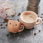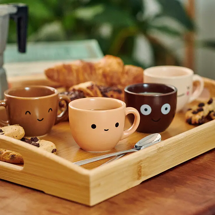 Ogni tazzina ha una propria identità: una tonalità, una forma e un volto diversi. Sono realizzate in ceramica di alta qualità, con una finitura opaca molto piacevole al tatto. Sono resistenti, adatte al microonde e alla lavastoviglie.