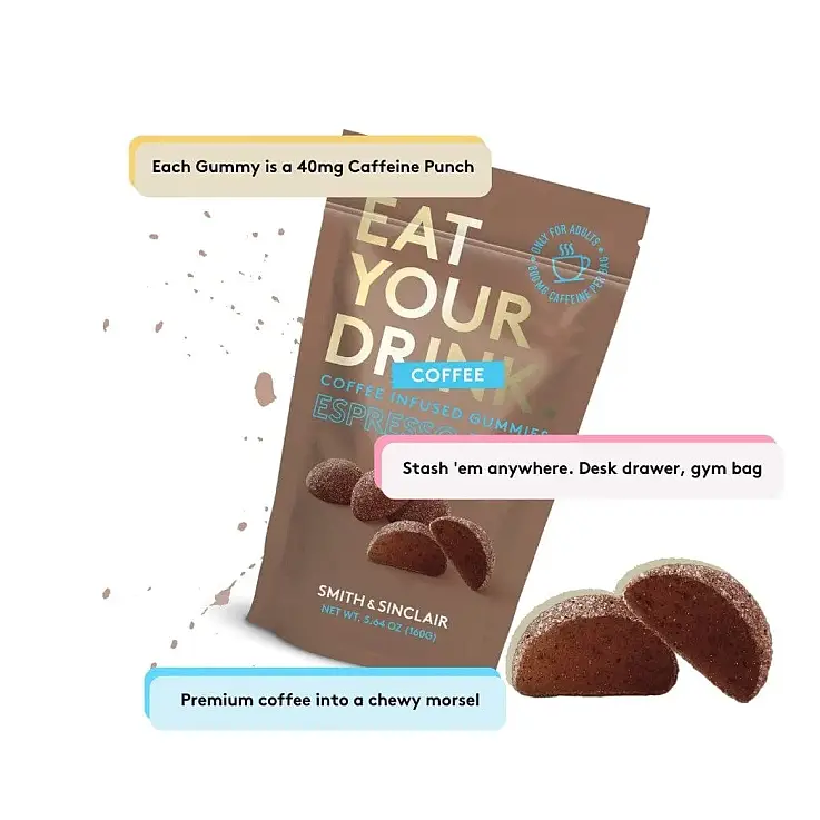 Queste gommine al caffè danno una carica di energia in un formato delizioso, comodo e pronto all'uso.