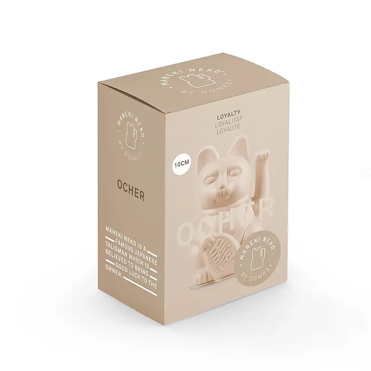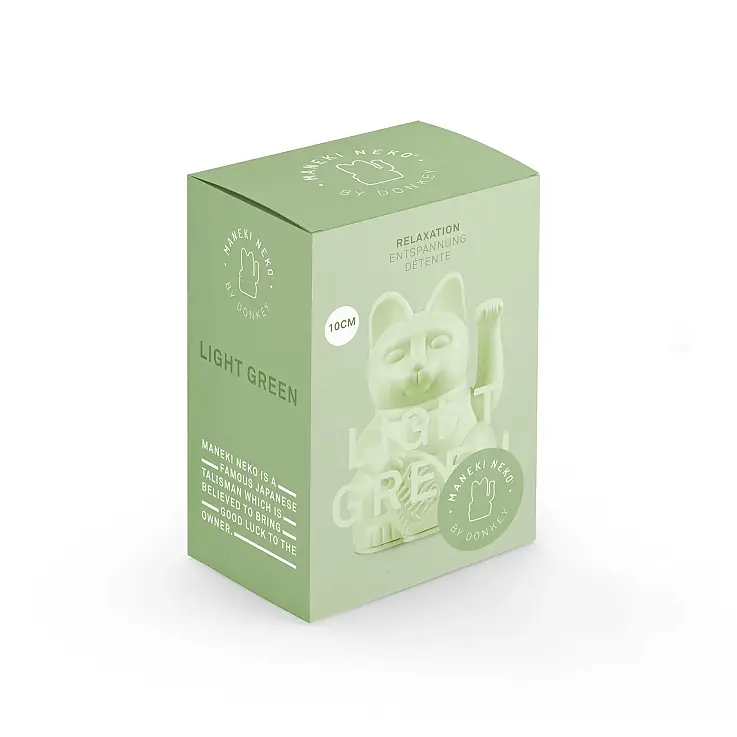 Con il suo braccio mobile, la figura attira simbolicamente la fortuna. Questa versione rivisitata del tradizionale gattino/gattino è disponibile in dieci colori opachi, è realizzata in plastica e misura non più di 10 cm. Il suo colore a blocchi lo rende un po' più moderno, pur mantenendo le forme originali e l'atmosfera tradizionale della figura.