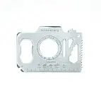 - Dispone di 12 strumenti: una lama, un cacciavite piatto e un cacciavite Phillips, 2 chiavi inglesi, una lama di sega, un estrattore di chiodi a leva, un ausilio per la guida, un apribottiglie, un cacciavite a farfalla, un buco della serratura e un righello con una guida per scattare foto in base alla luce del giorno.