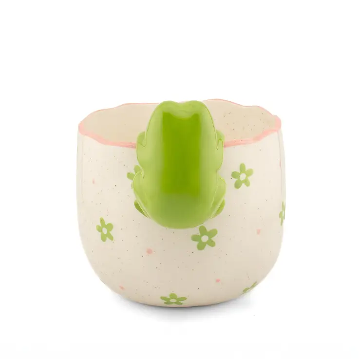 Ci sono tre modelli diversi: cucciolo, gattino e rana, ognuno con la propria impronta e personalità. Misurano 14 x 15,5 x 13 cm, sono dipinte a mano in colori pastello e hanno bordi ondulati e imperfetti che, insieme alla finitura screziata del vaso, conferiscono una bella sensazione di artigianalità.